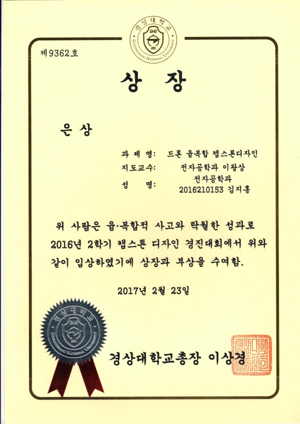Drone Mounted RFID Based Mine Detection, 2016 GNU Capstone Design Contest (Winter)