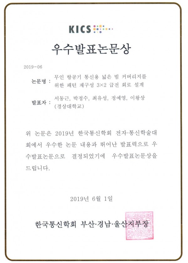 Design of Pattern Reconfigurable 3 x 2 Feeding Network for Wide Beam Coverage at UAV Application, The 2019 Korean Institute of Communications and Information Sciences