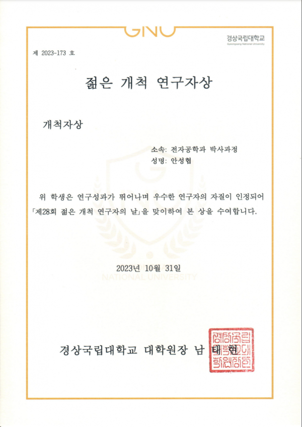 0.5kWatt 2.45GHz GaN-Based Microwave Heating System Design With Active Phase Control, 2023 GNU the 28th Young Pioneer Researcher Day.