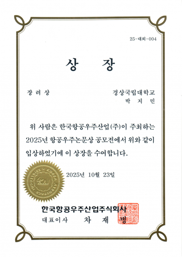 KAI 항공우주논문상 장려상 수상